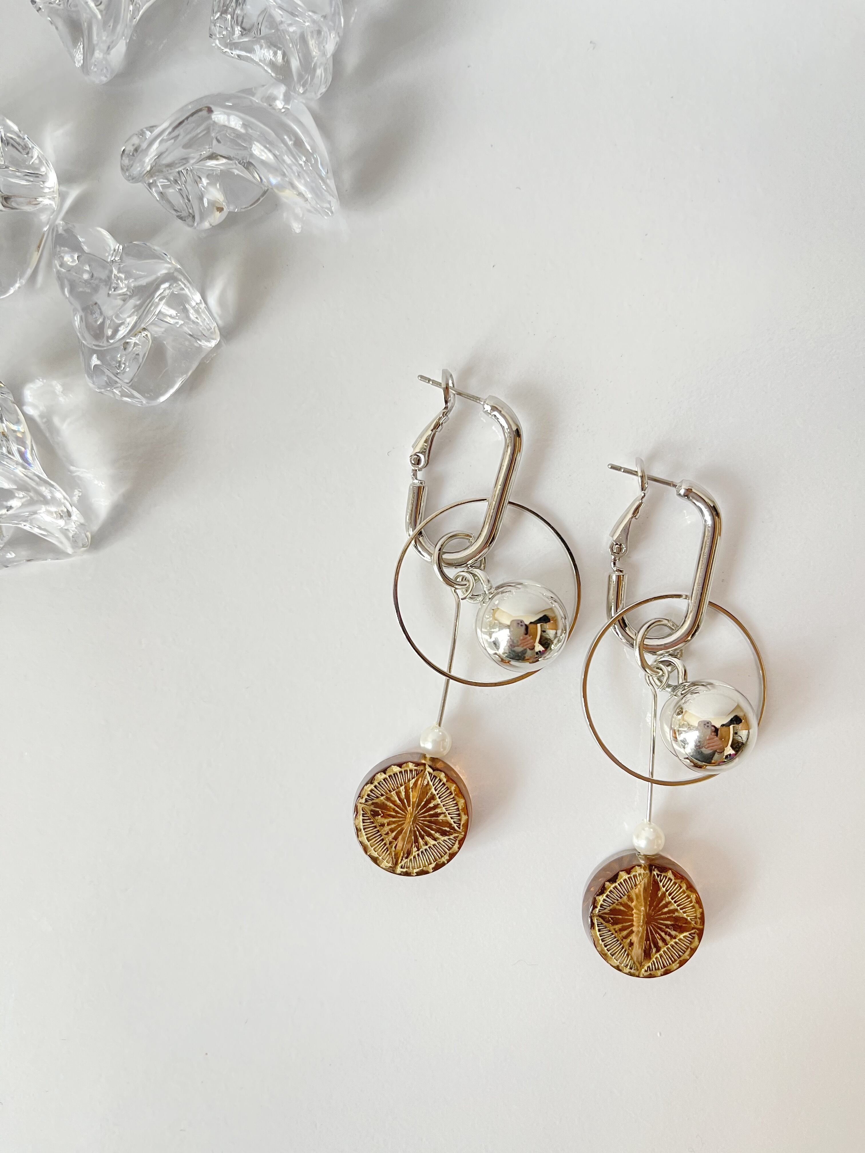 シルバーピンで長さを出し、動いたときにチェコビーズが揺れて耳元を華やかにしてくれます。