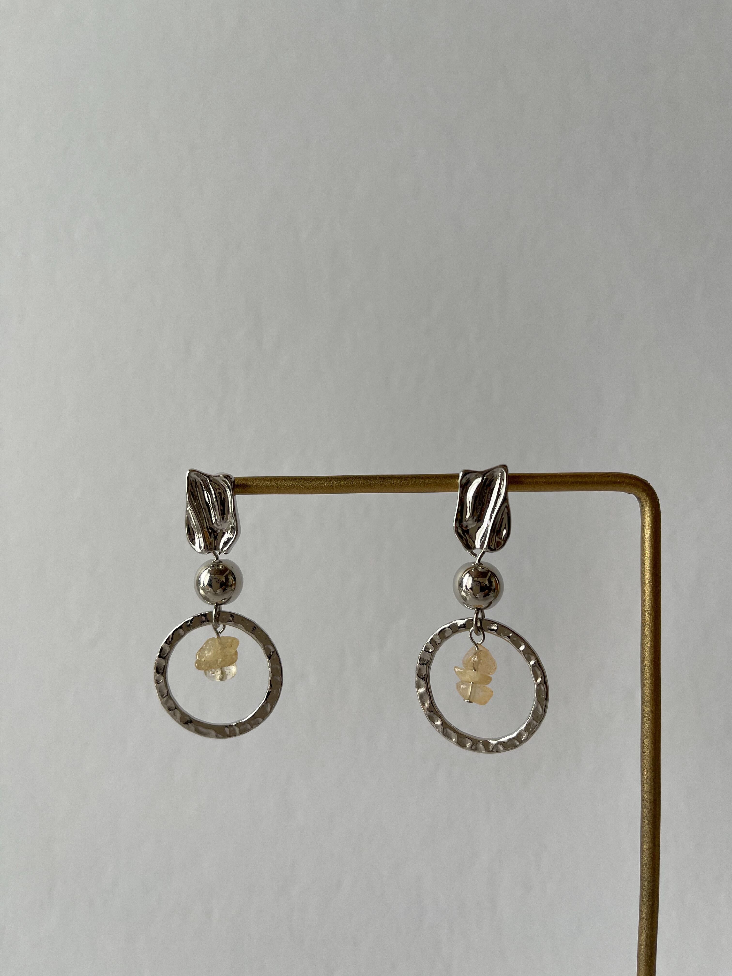 様々な形のシルバーパーツを組み合わせて、シトリン石をあしらいアクセントとして加えてあります。